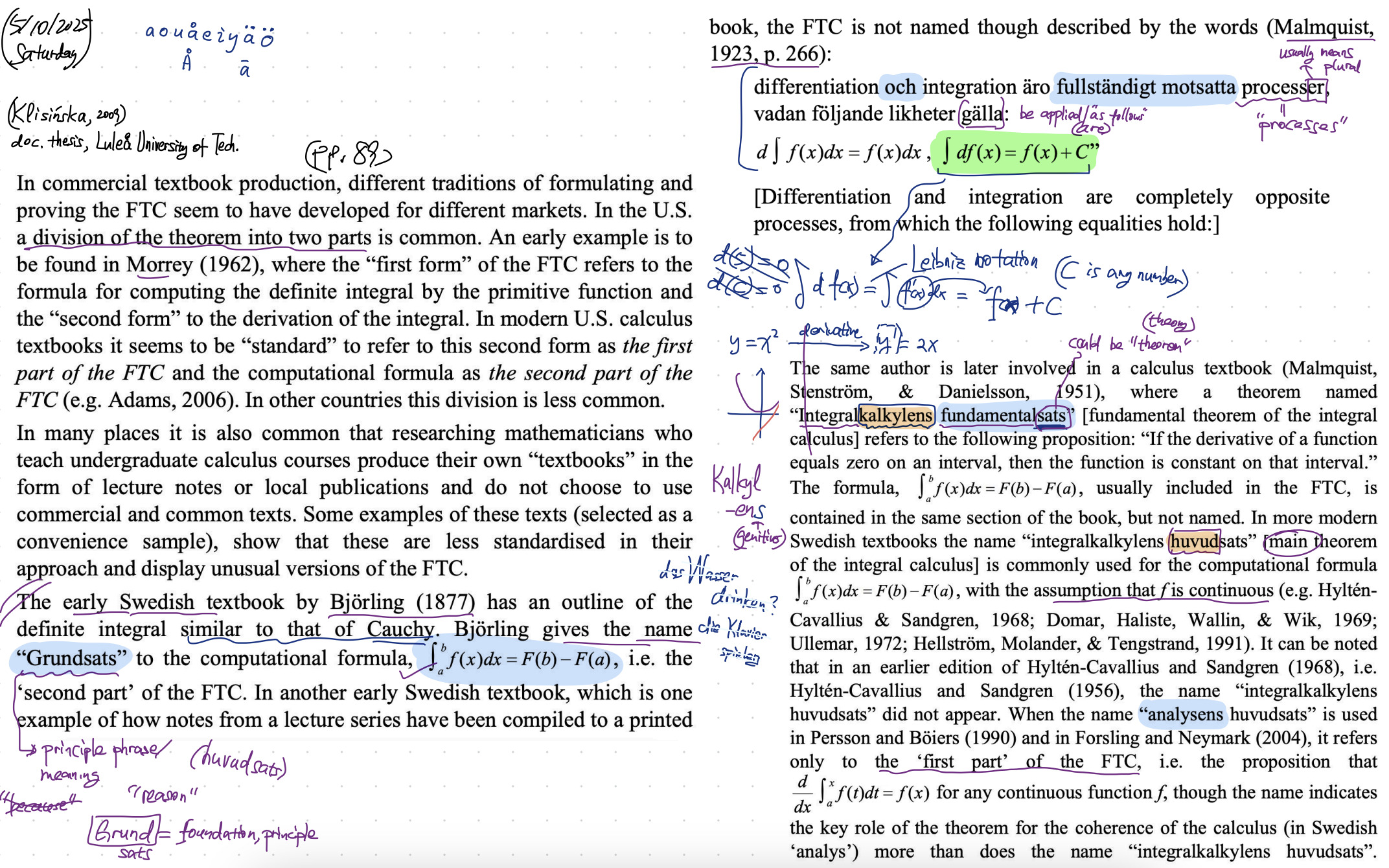 Le suédoisReading: Klisinska, A. (2009). The Fundamental Theorem of Calculus: A Case Study into the Didactic Transposition of Proof (doctoral thesis from Luleå University of Technology).